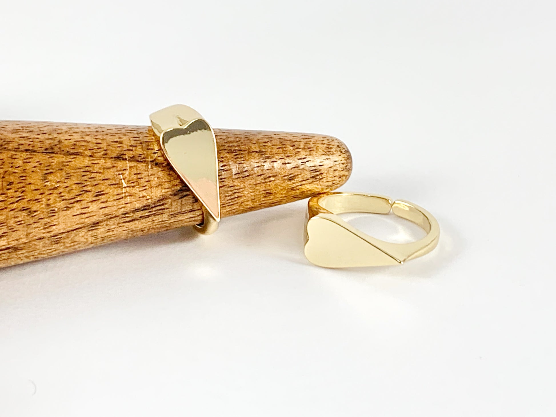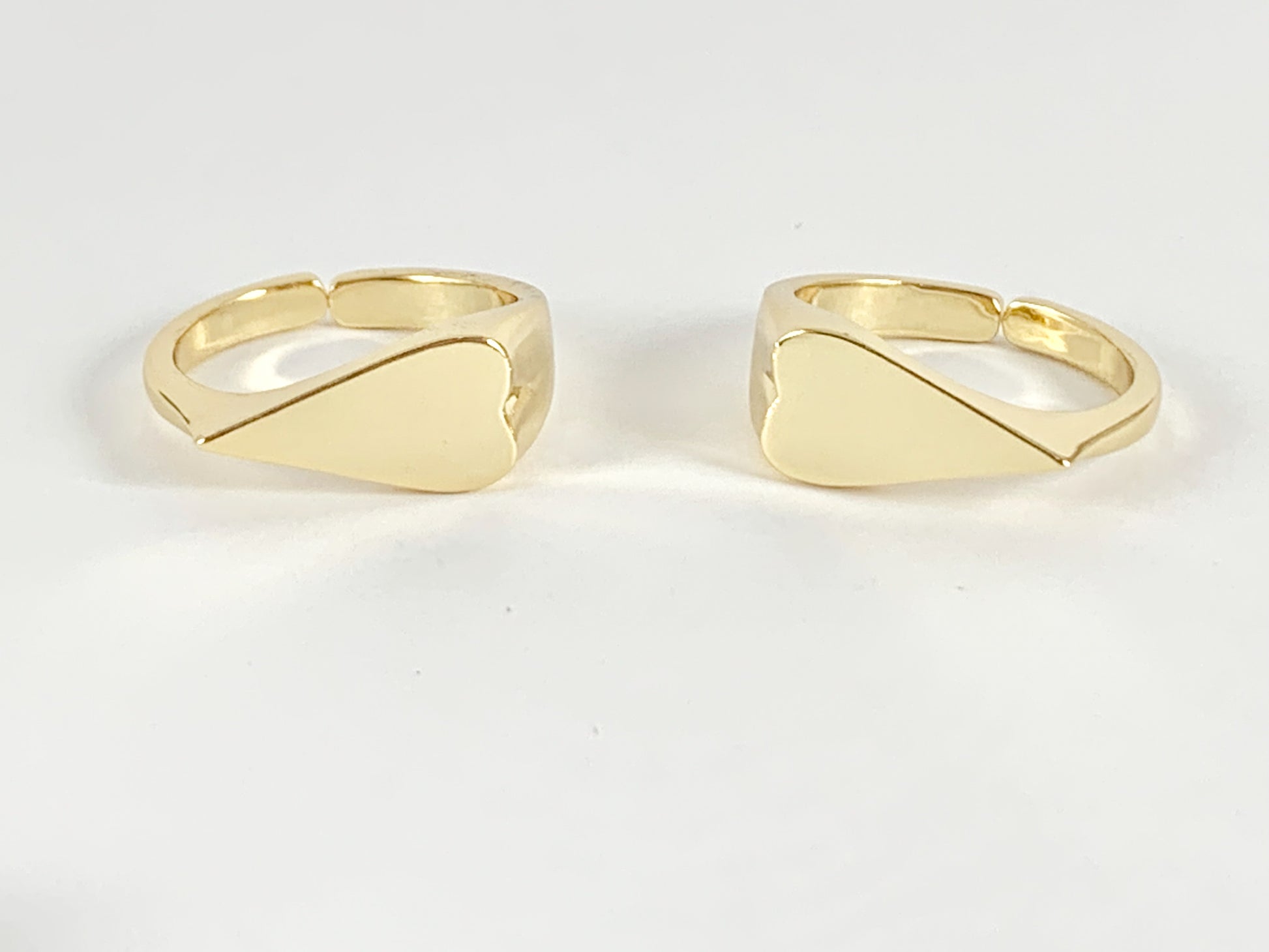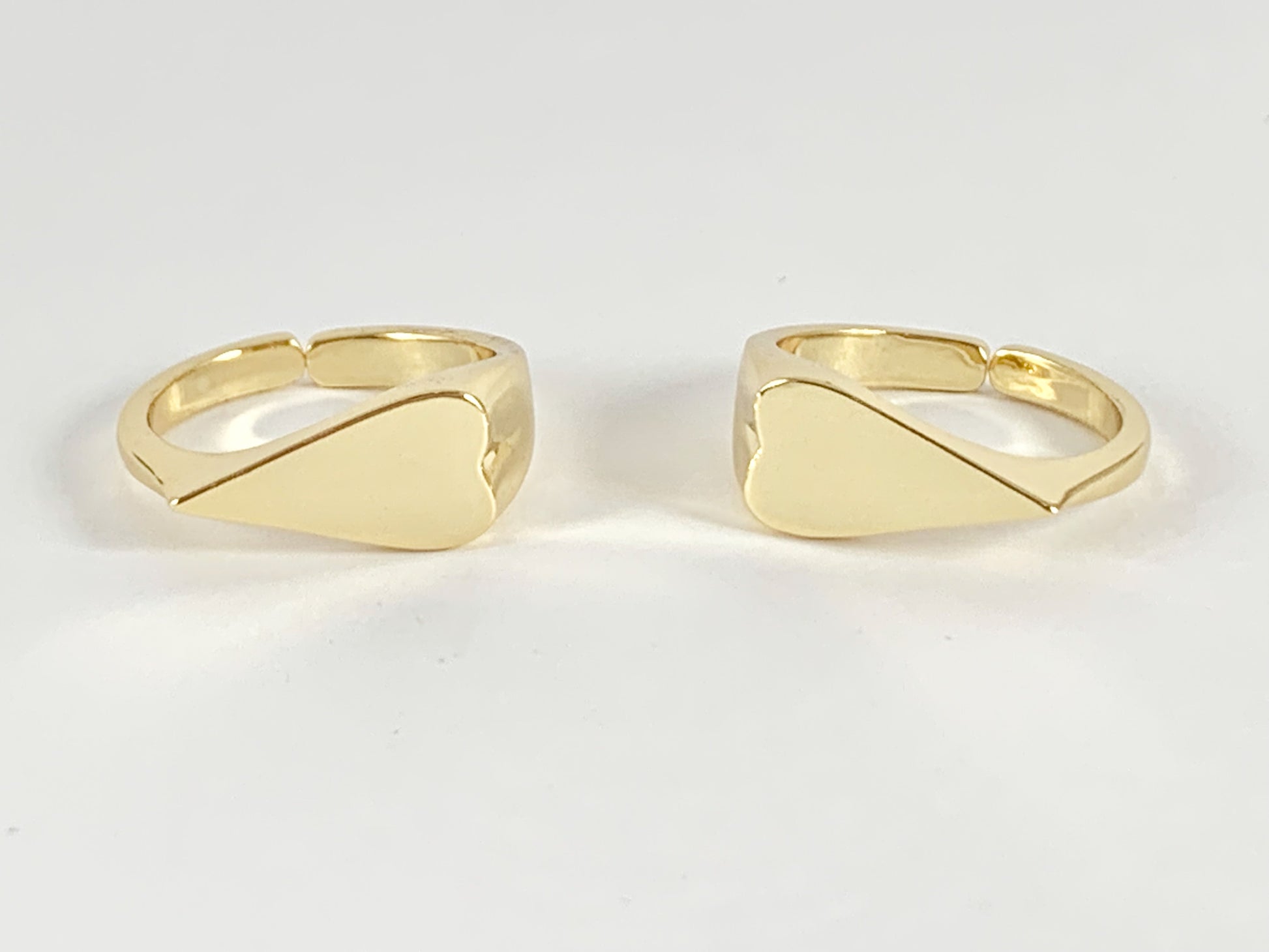 Side Heart Signet Adjustable Ring in Real Gold 18K Plated Copper 5pcs