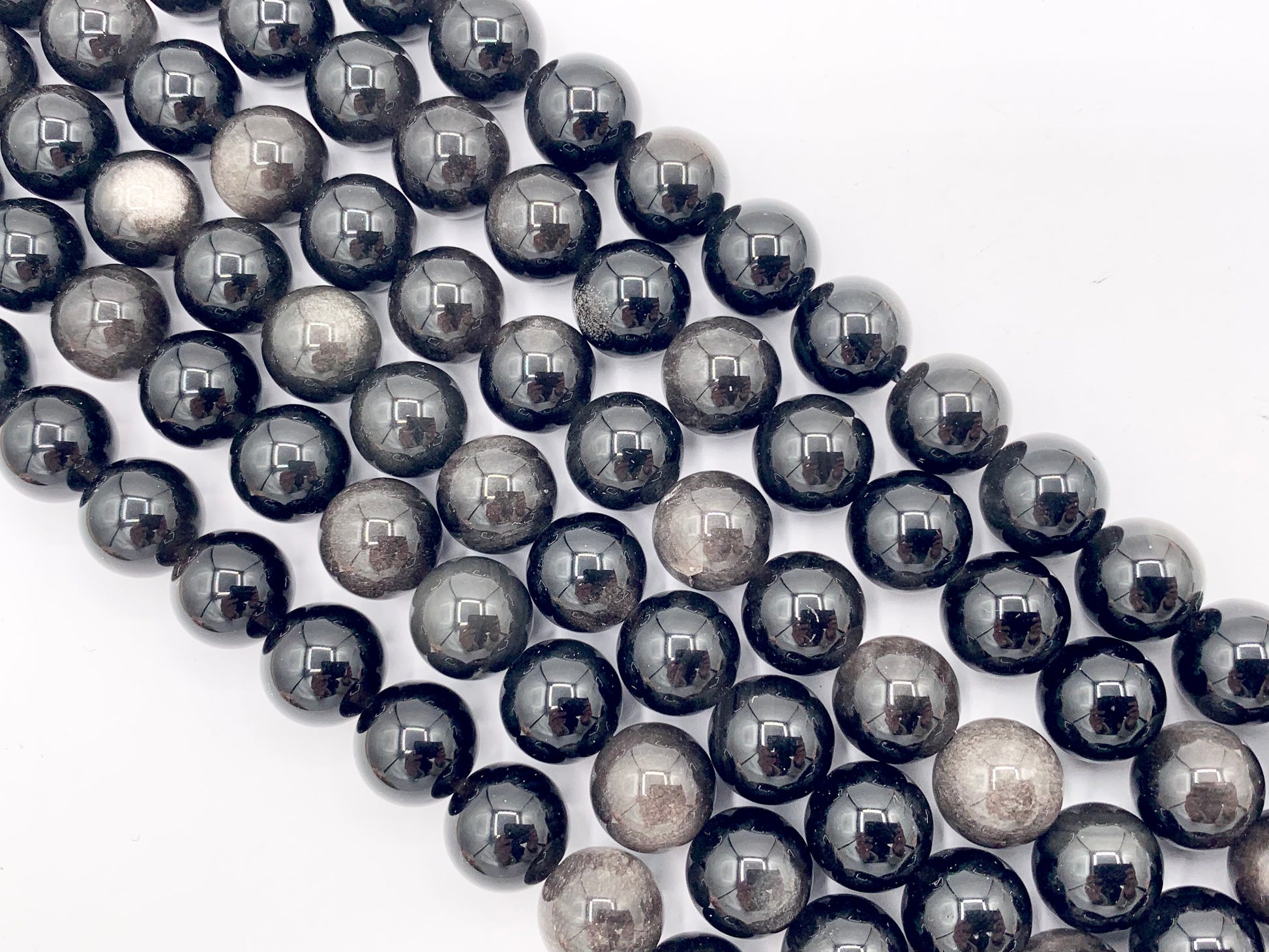 Silver Obsidian Round Smooth Shiny Natural Healing Gemstone Beads Men's and Women's bracelet 6-14mm Around 15"