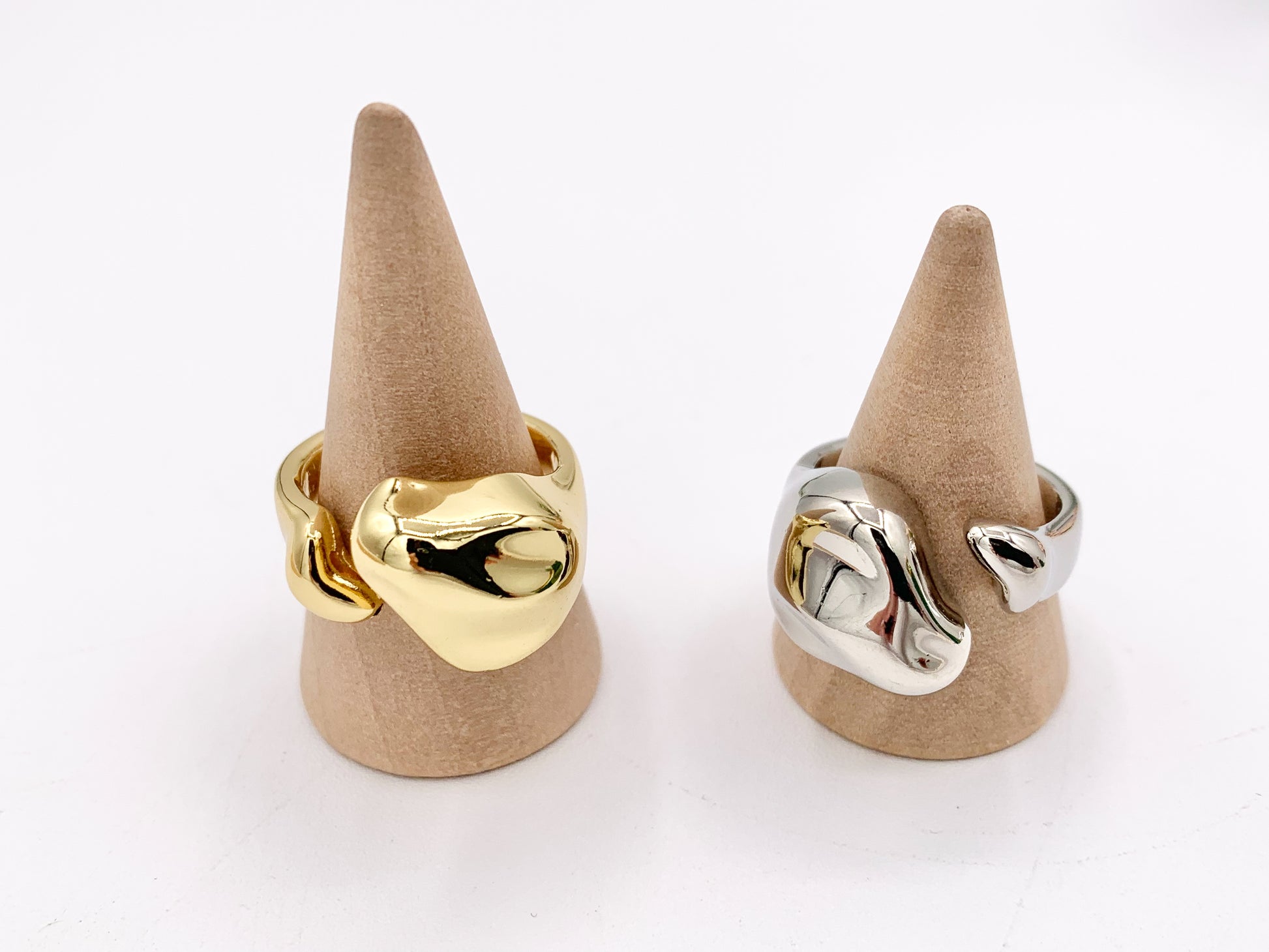 Simple Chunky Free Formed Nugget Bypass Ring in 18K Gold And Platinum Plated Brass 5PCS