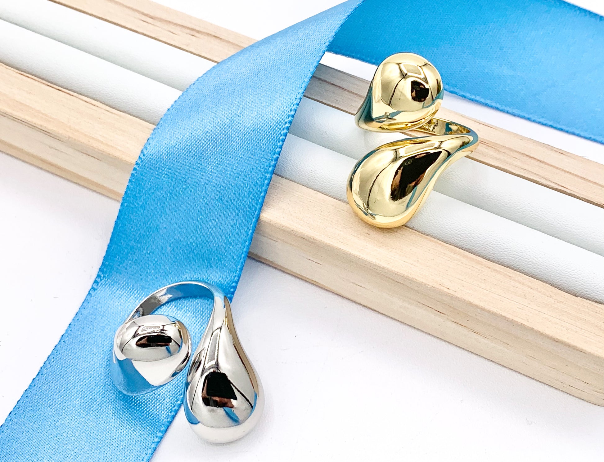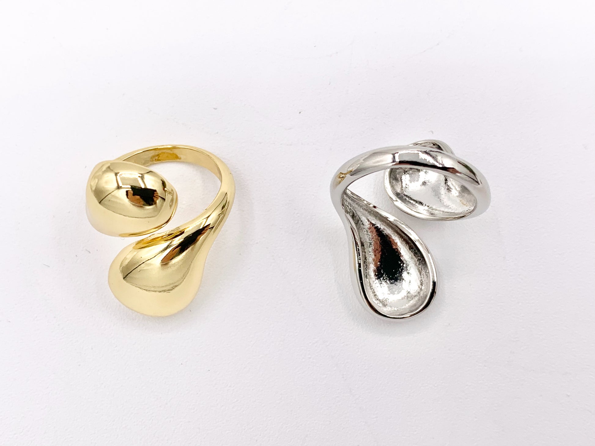 Simple Chunky Teardrop Bypass Ring in 18K Gold And Platinum Plated Brass 4PCS