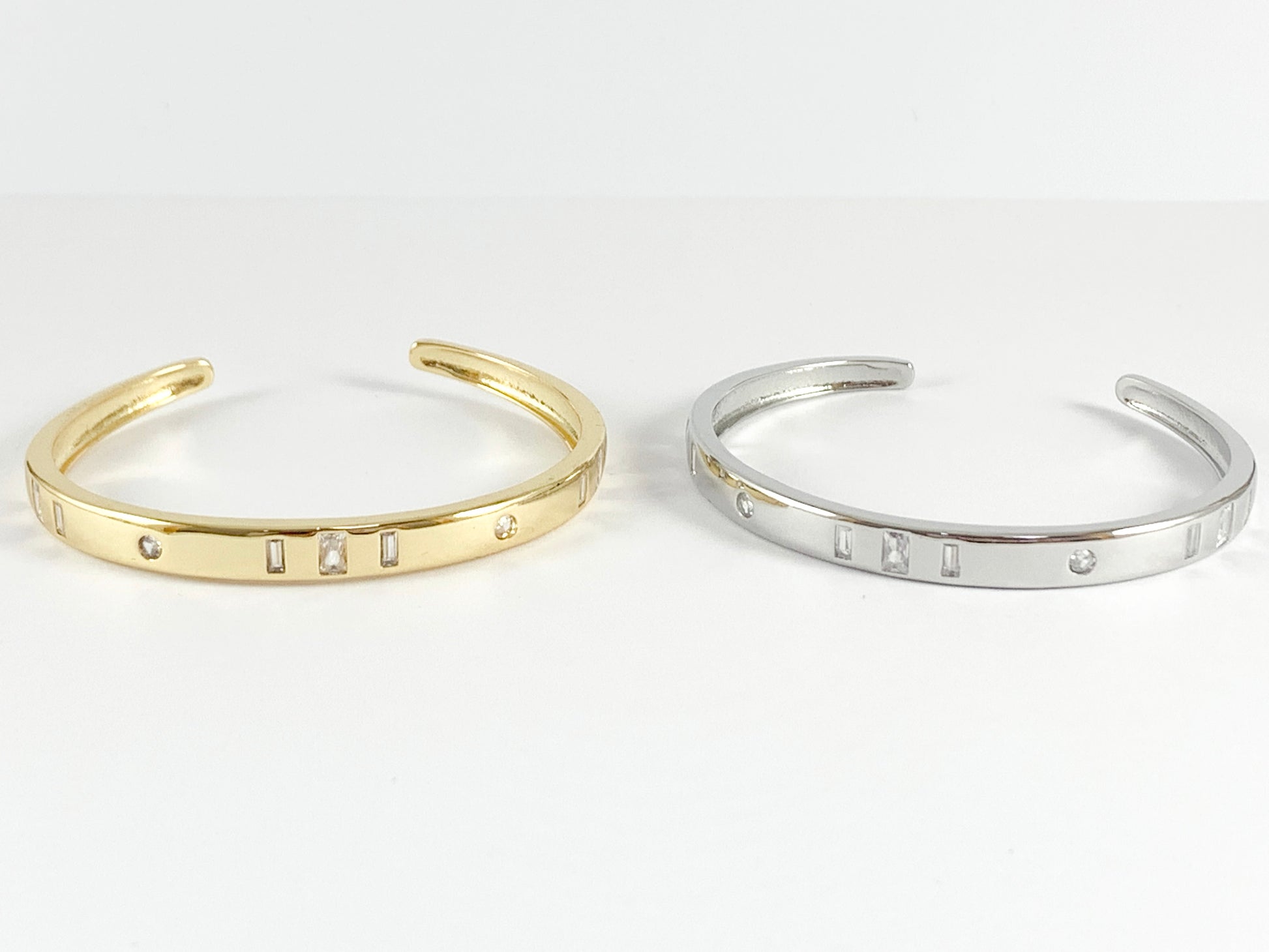 Simple Geometric CZ Pave Rhinestone Bracelet Cuffs in 18K Gold or Silver plated Copper