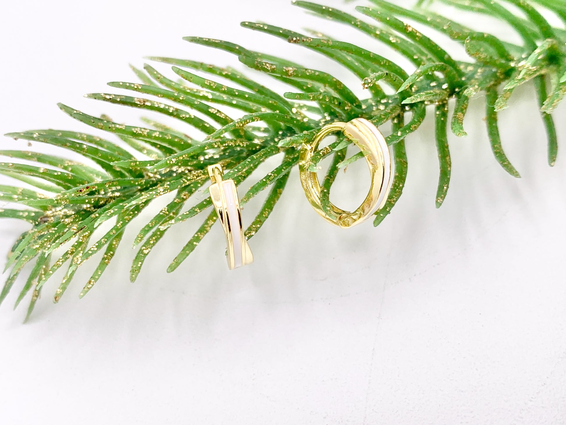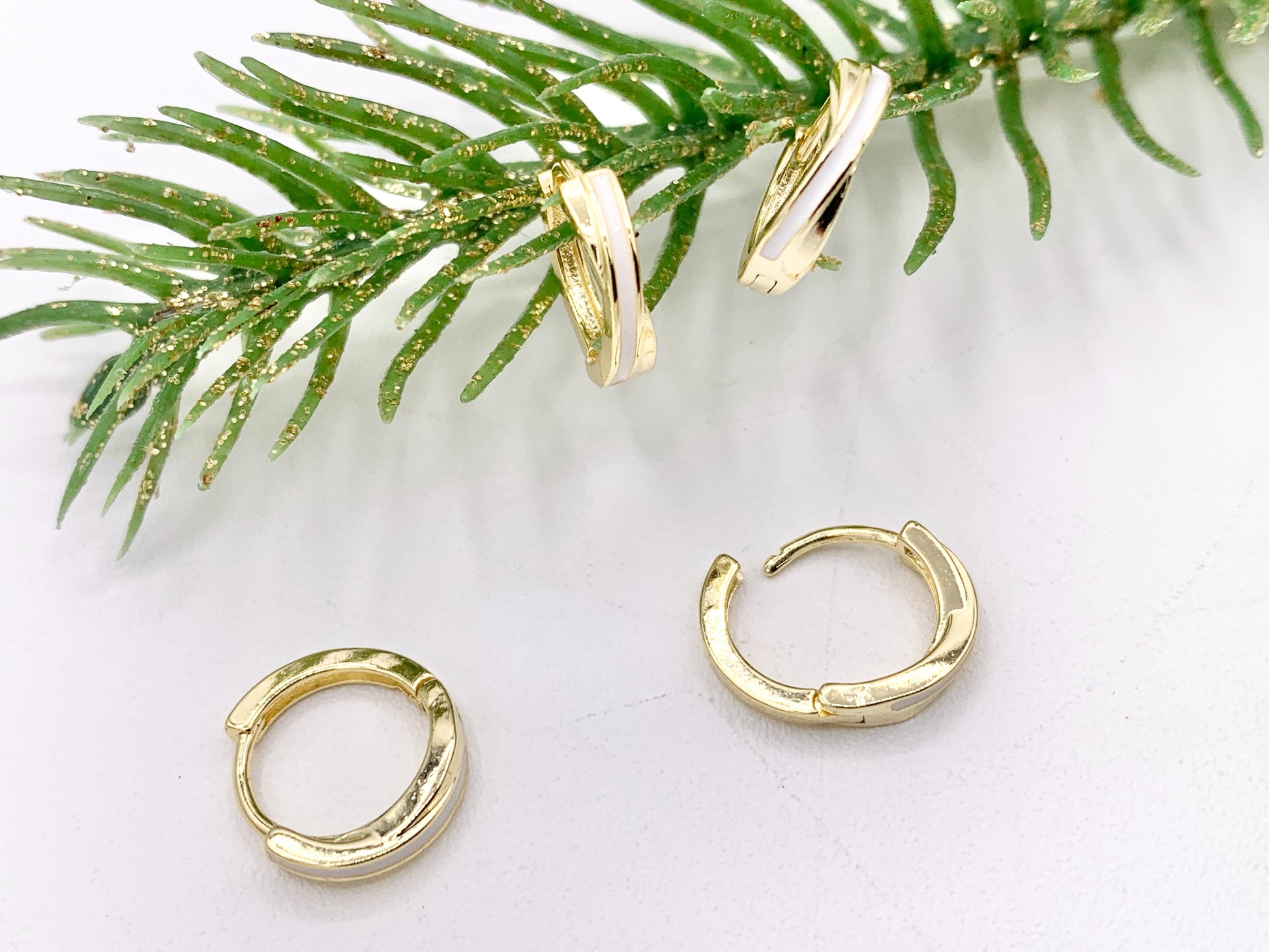 Simple White Enamel Tiny Earring Huggies 18K Gold Plated Over Brass Earrings 4 PAIRS