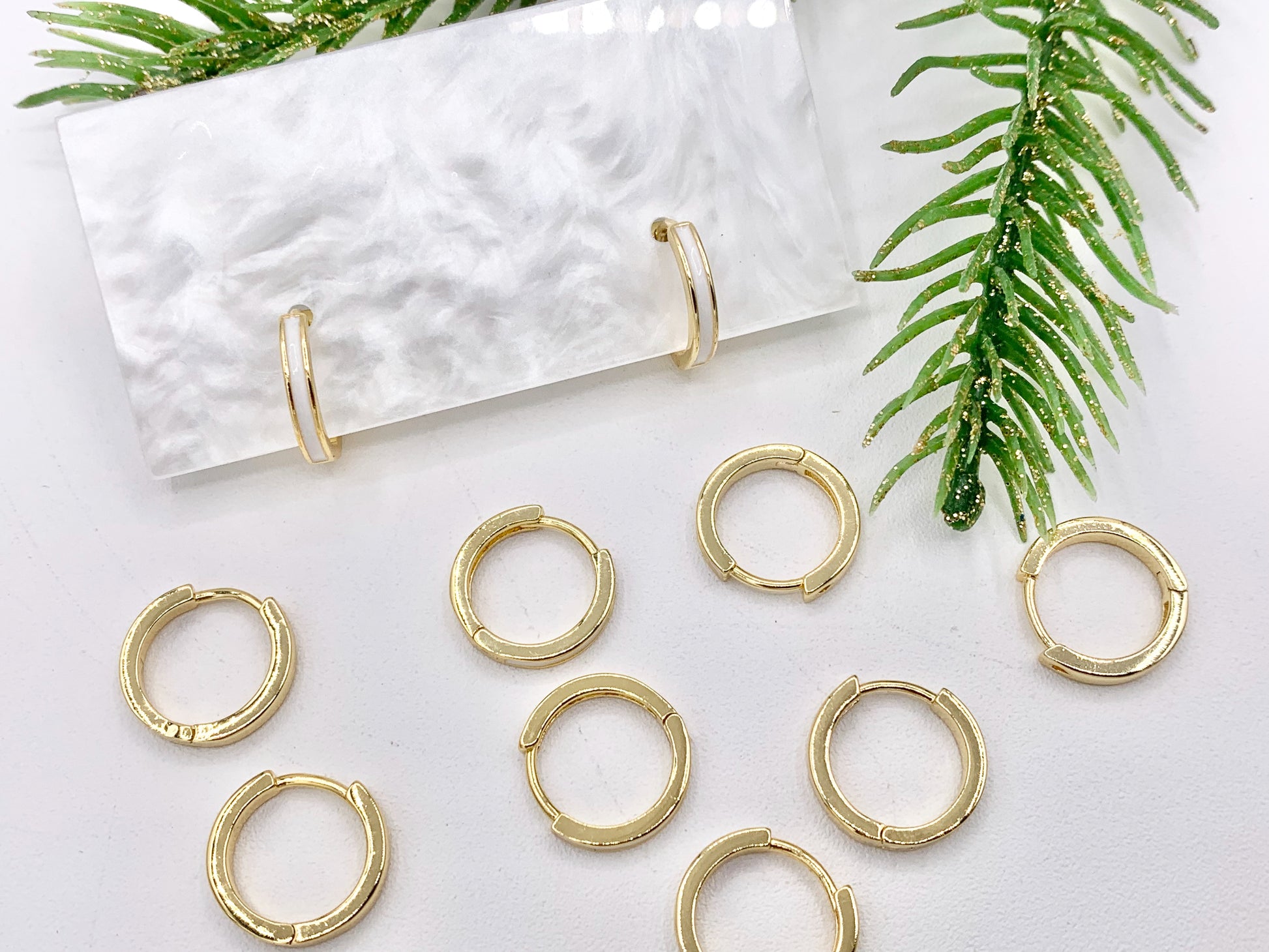 Simple White Enamel Tiny Earring Huggies 18K Gold Plated Over Brass Earrings 5 PAIRS