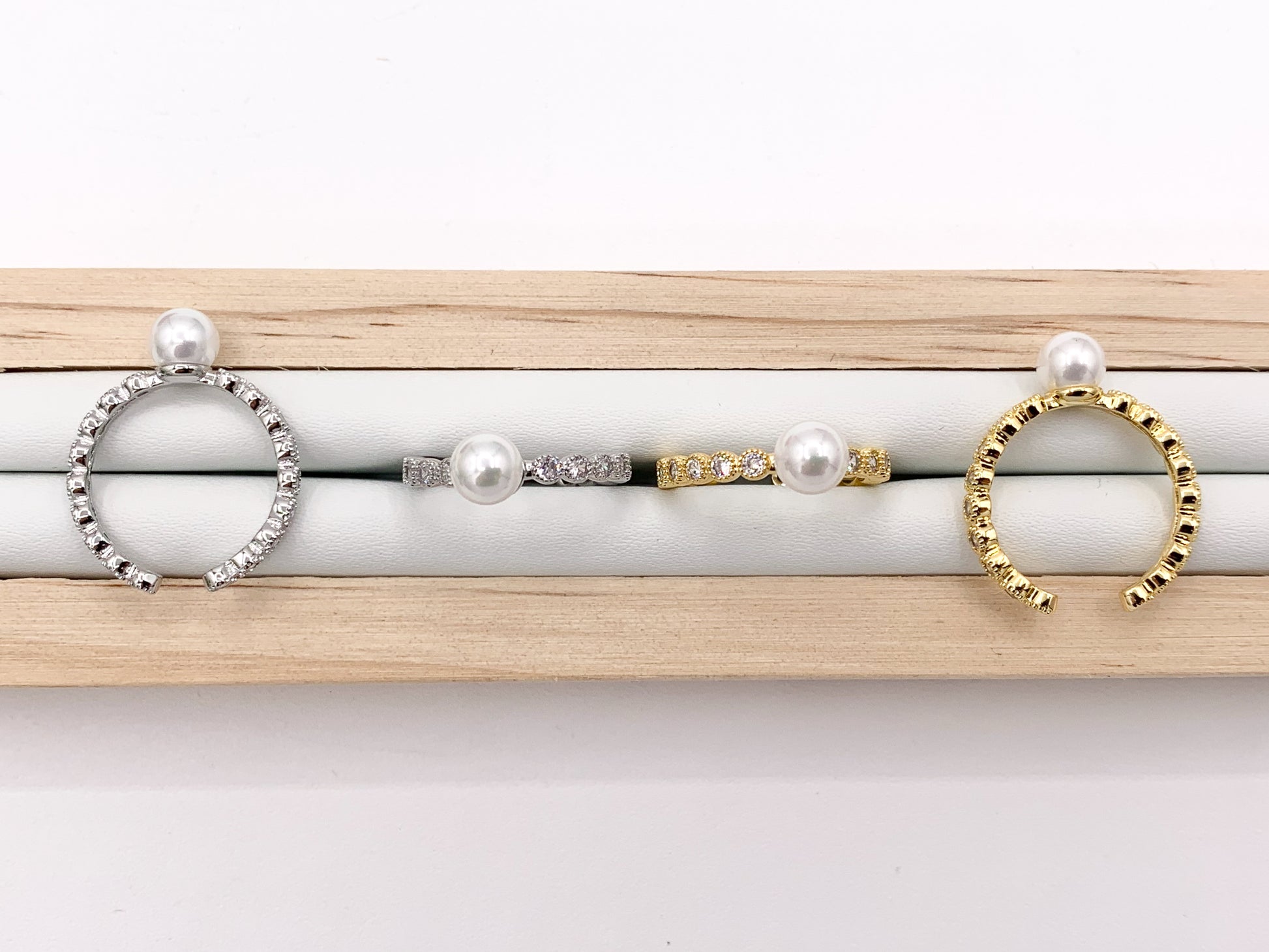 These pretty pearl rings are real gold/silver 18k plated with a brass base. They are unique and beautiful. Definitely would catch everyone's eyes!