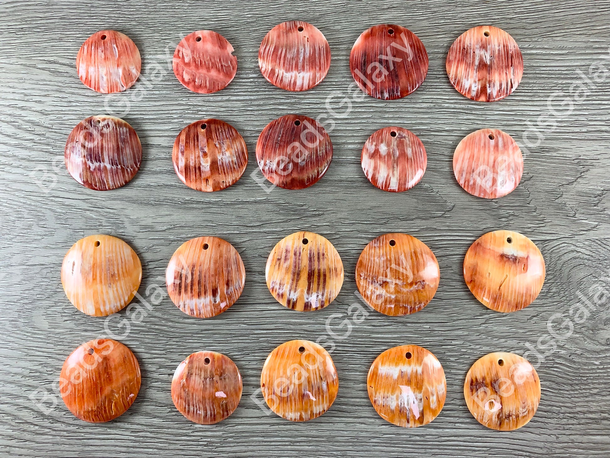 This pop of orange or red comes from the shell of the mollusk, Spondylus varius. “Spondylus” means “spines on the back,” hence the “spiny oyster” nomenclature. They are also referred to as spondylus, spondylid and thorny oyster. Add a pop of this gorgeous color to your jewelry making!
