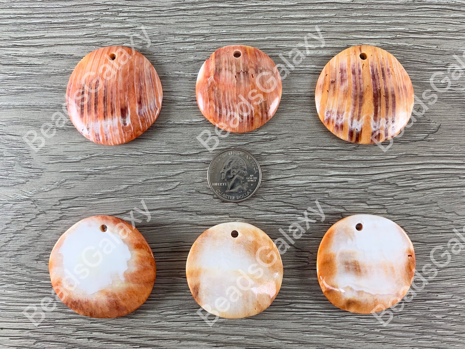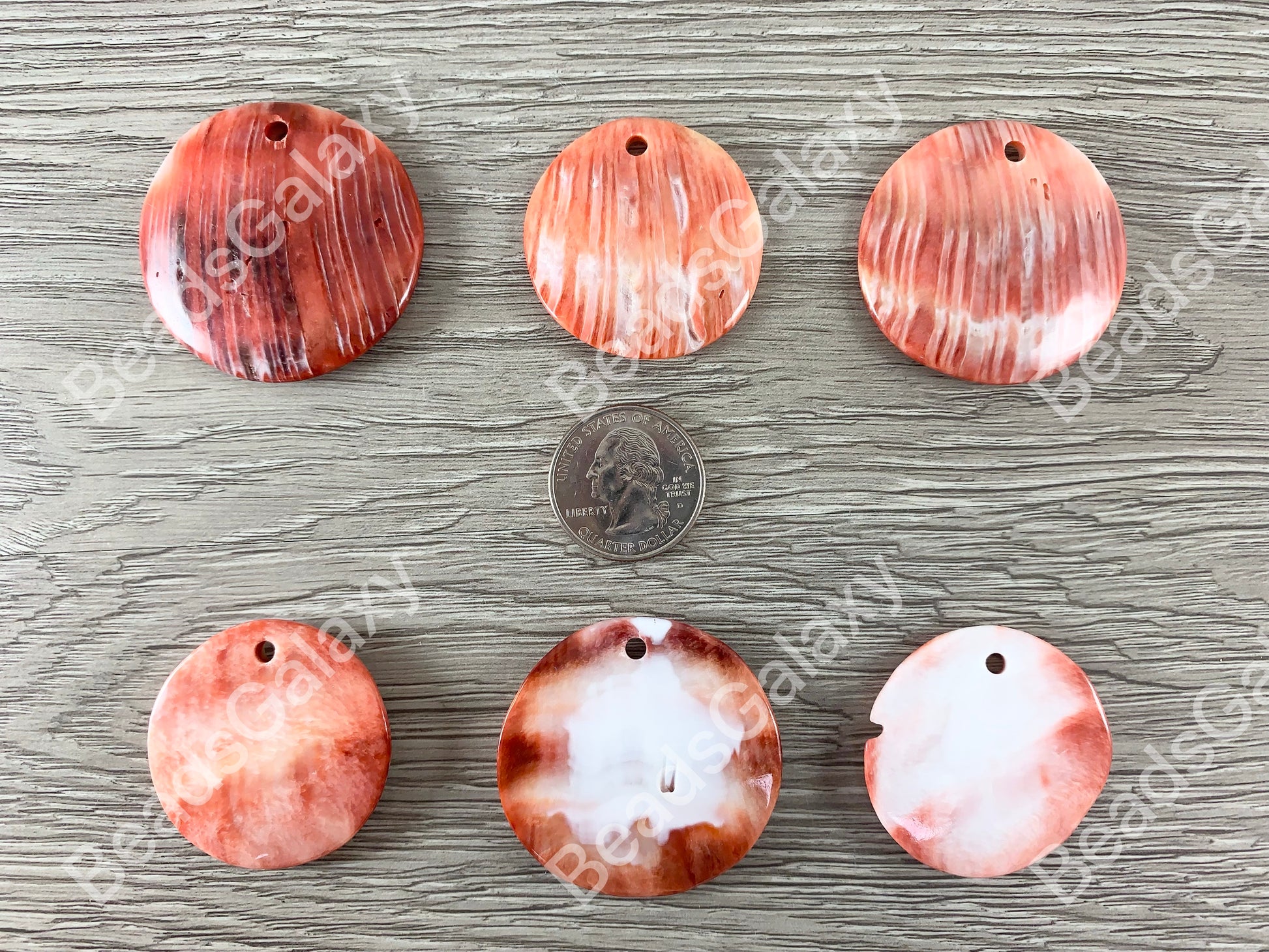 Spiny Oyster Coin Medallion Pendants - Natural Orange or Red Color
