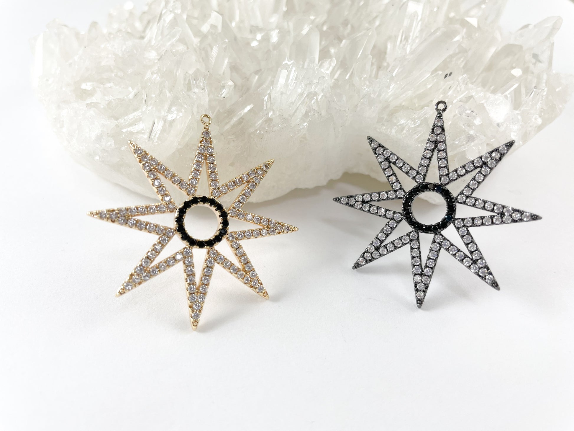 Star Burst Pendant -18K Gold/Gunmetal Plated Micro CZ Pave Over Brass 3pcs