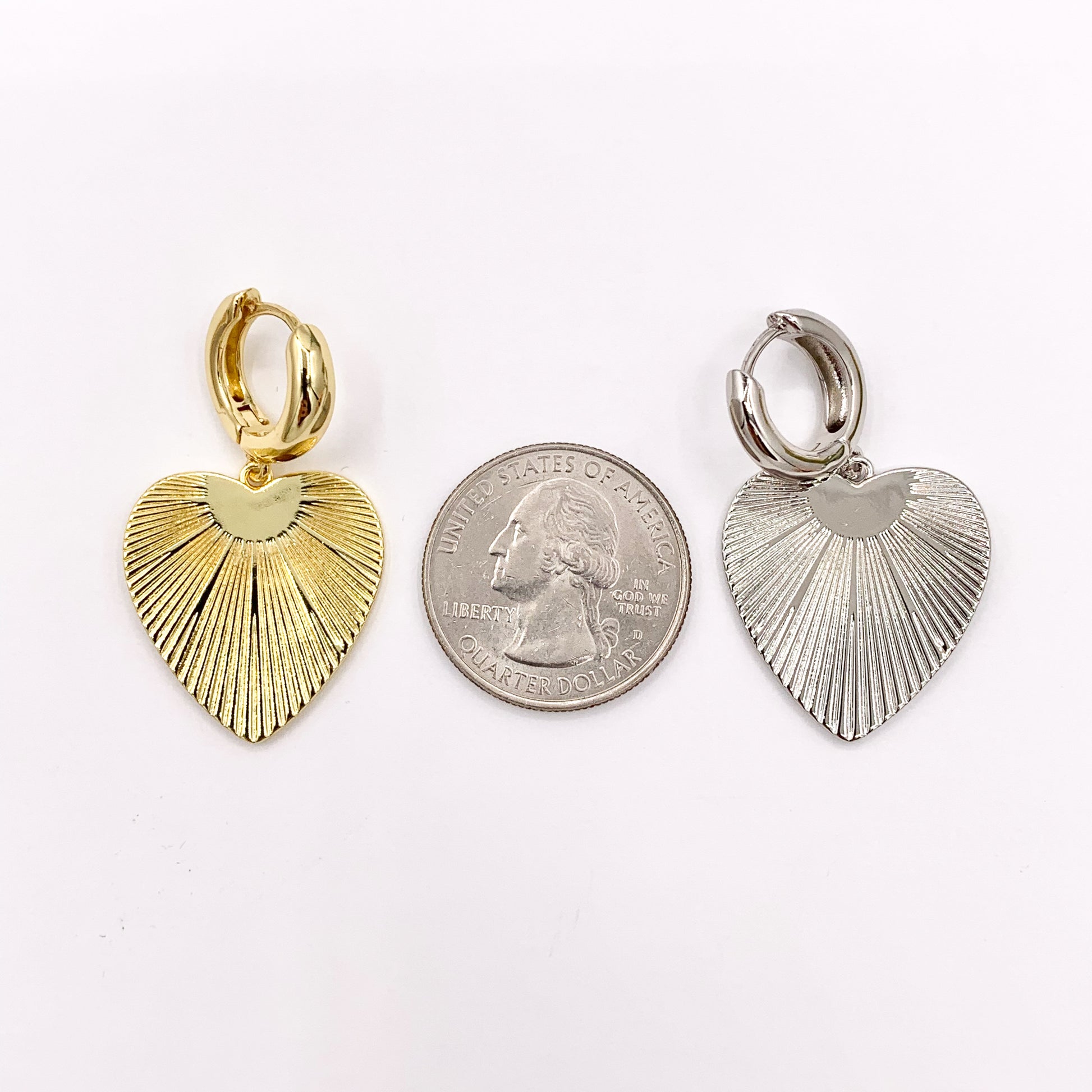 Statement Dangle Heart Earrings Huggies in 18K Gold or Silver Plated Copper