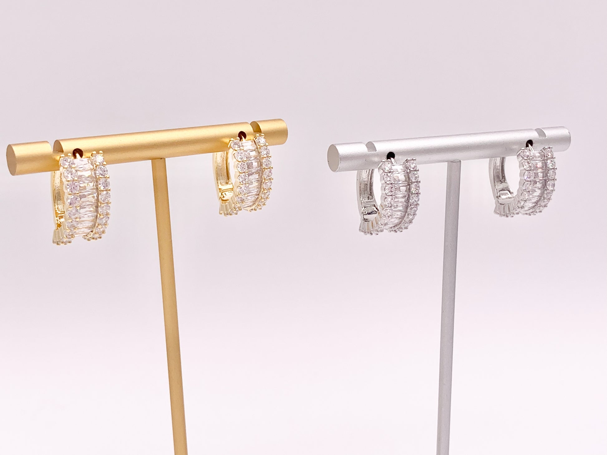 Striking Rhinestone Cubic Zirconia Pave Huggie Earrings in 18K gold or Silver Plated Copper 3 pairs