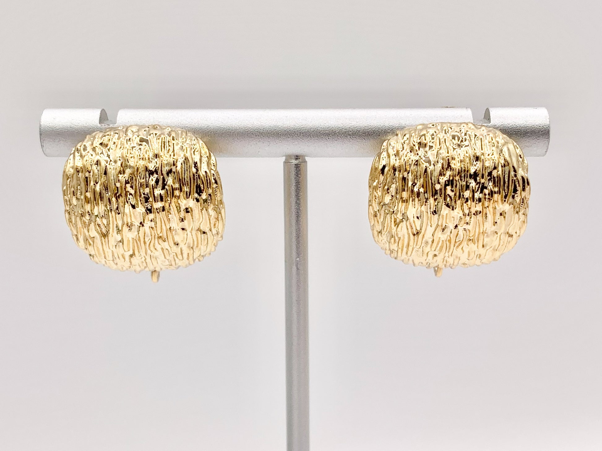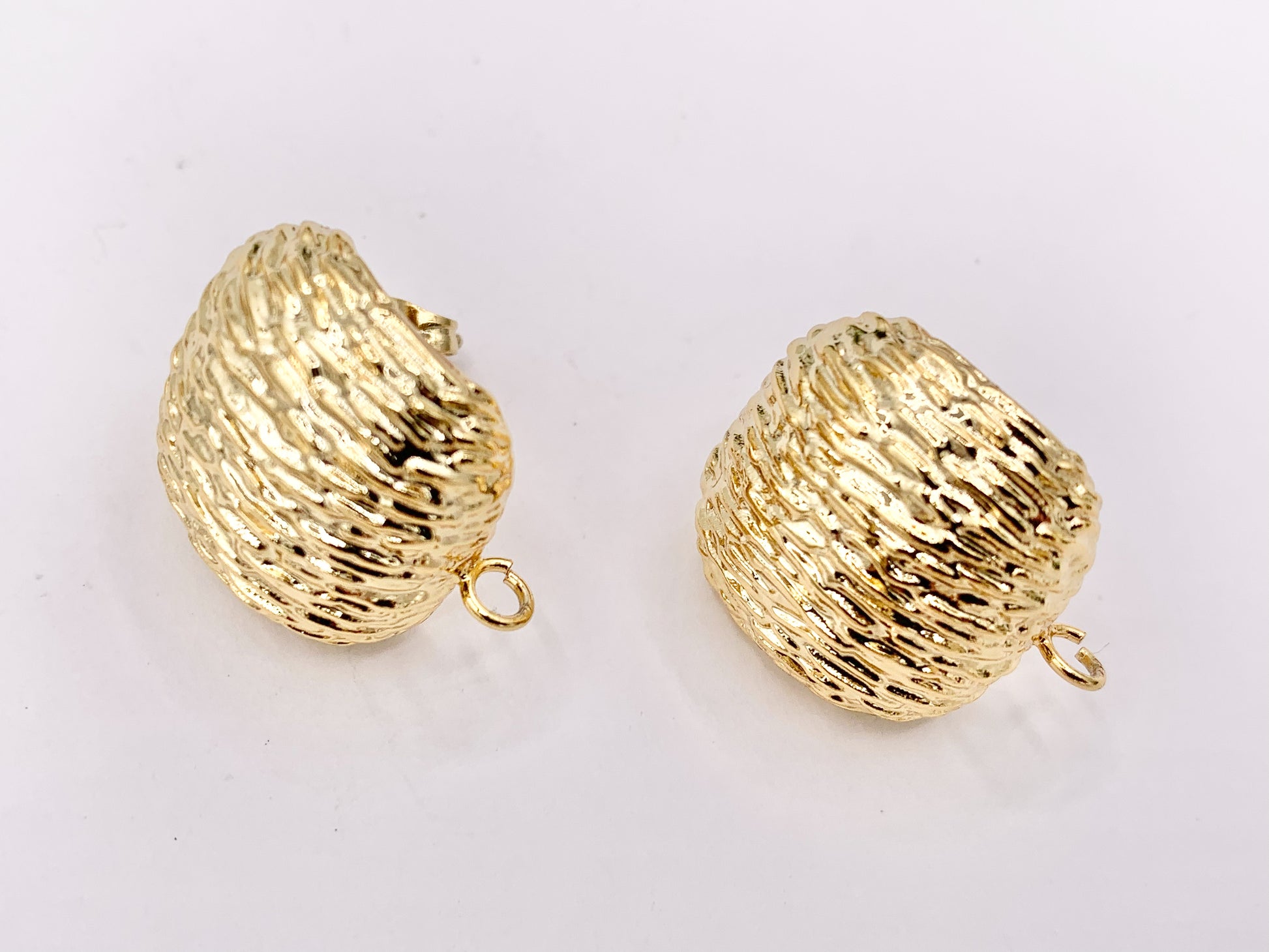Textured Puffy Square Earring Findings Component with Loop in 18K Gold plated Copper 4 PAIRS