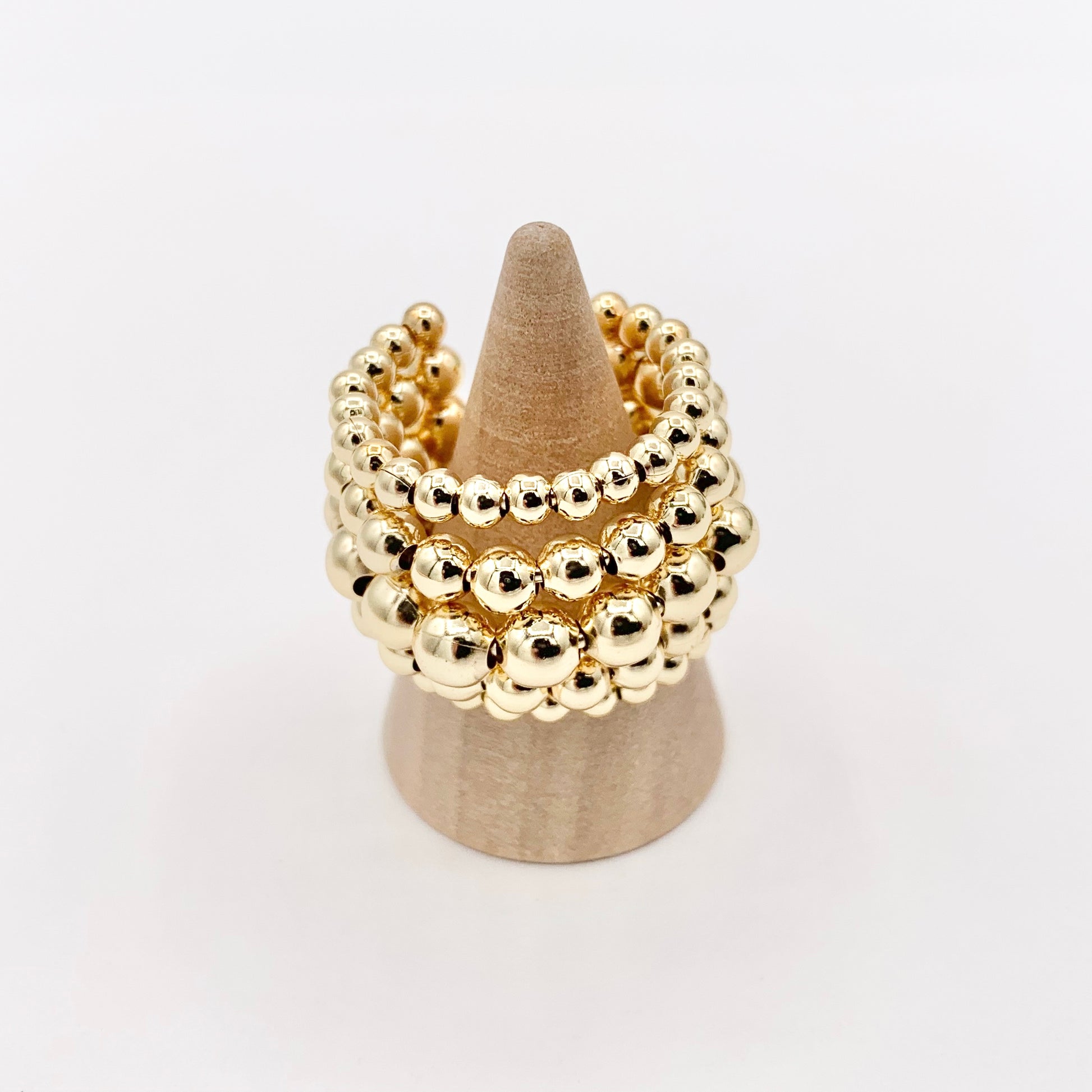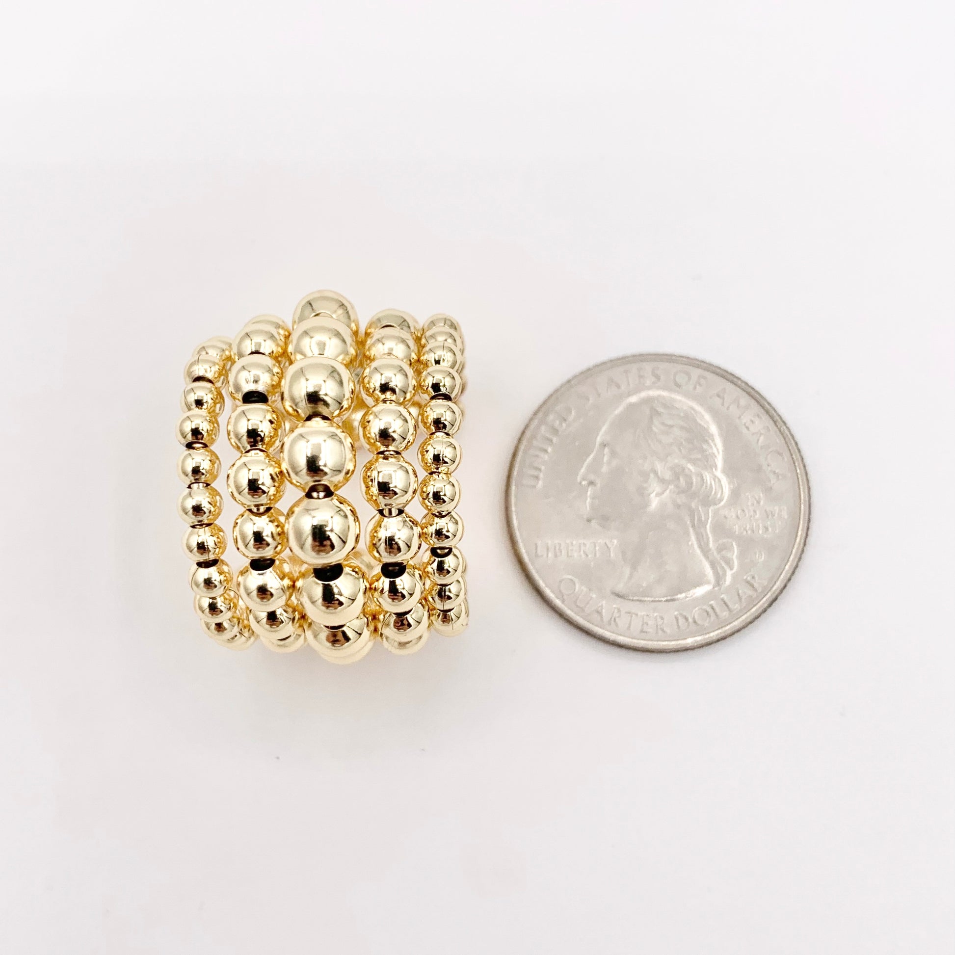 Thick Chunky Gold Beaded Ring in Real Gold 18K Plated Copper 4 PCS
