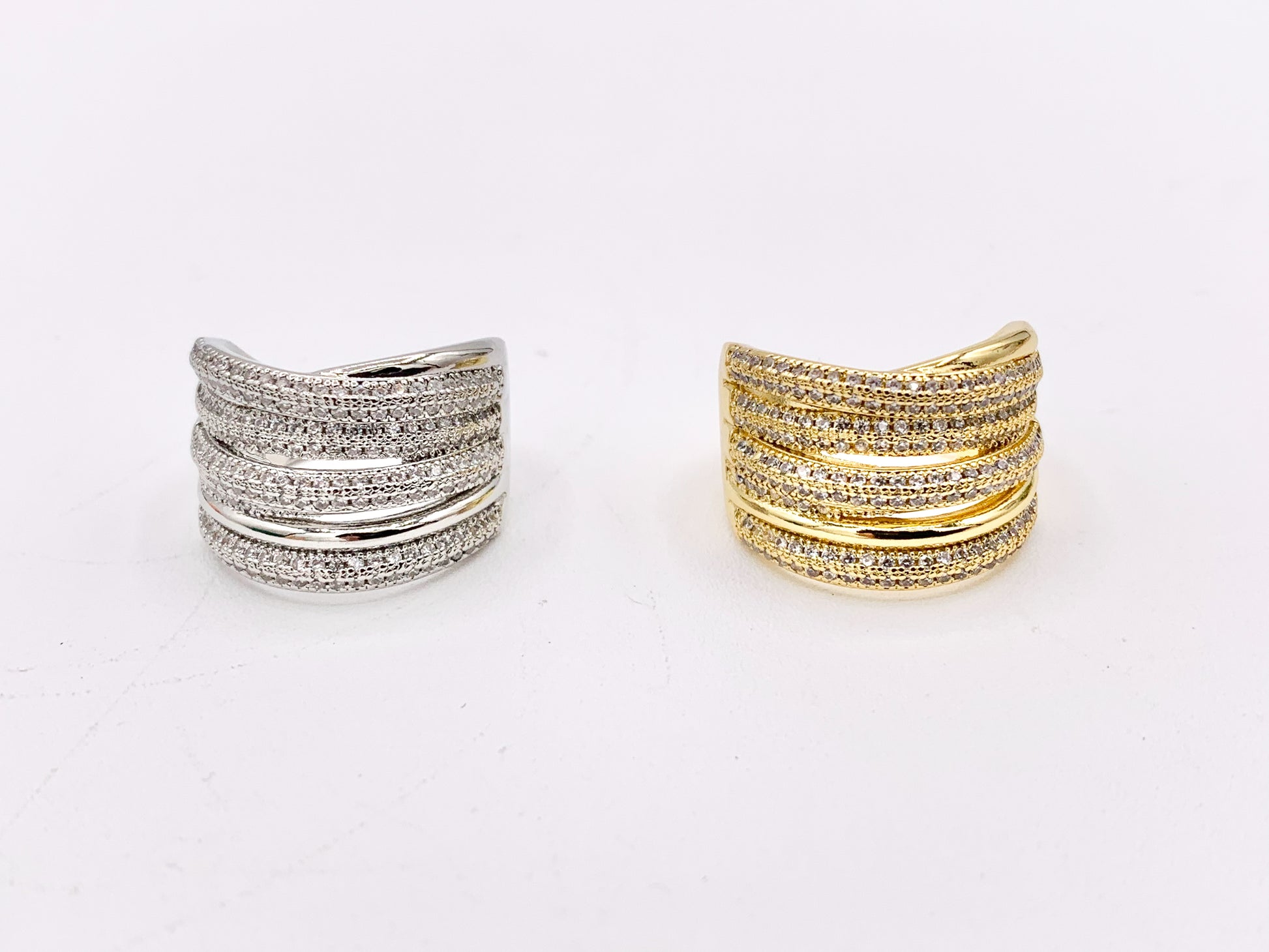 Thick Wrap Adjustable Ring in Real Gold/Platinum 18K Plated Copper CZ Pave 3PCS