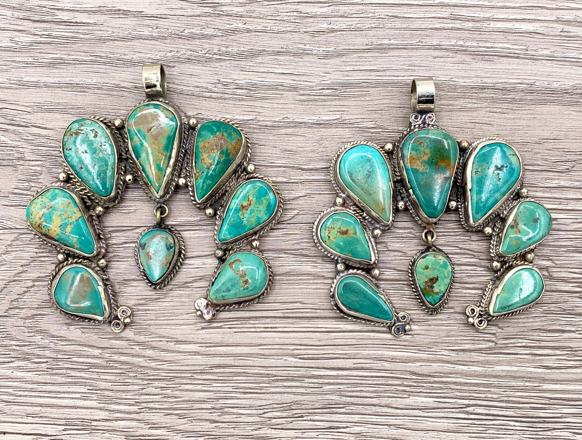Because these wonderful pendants are handmade and natural turquoise, each pendants color, size and cut will be slightly different from each other. We appreciate you for understanding! :)