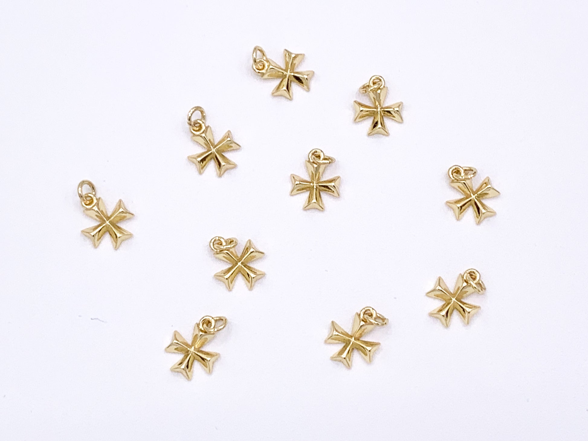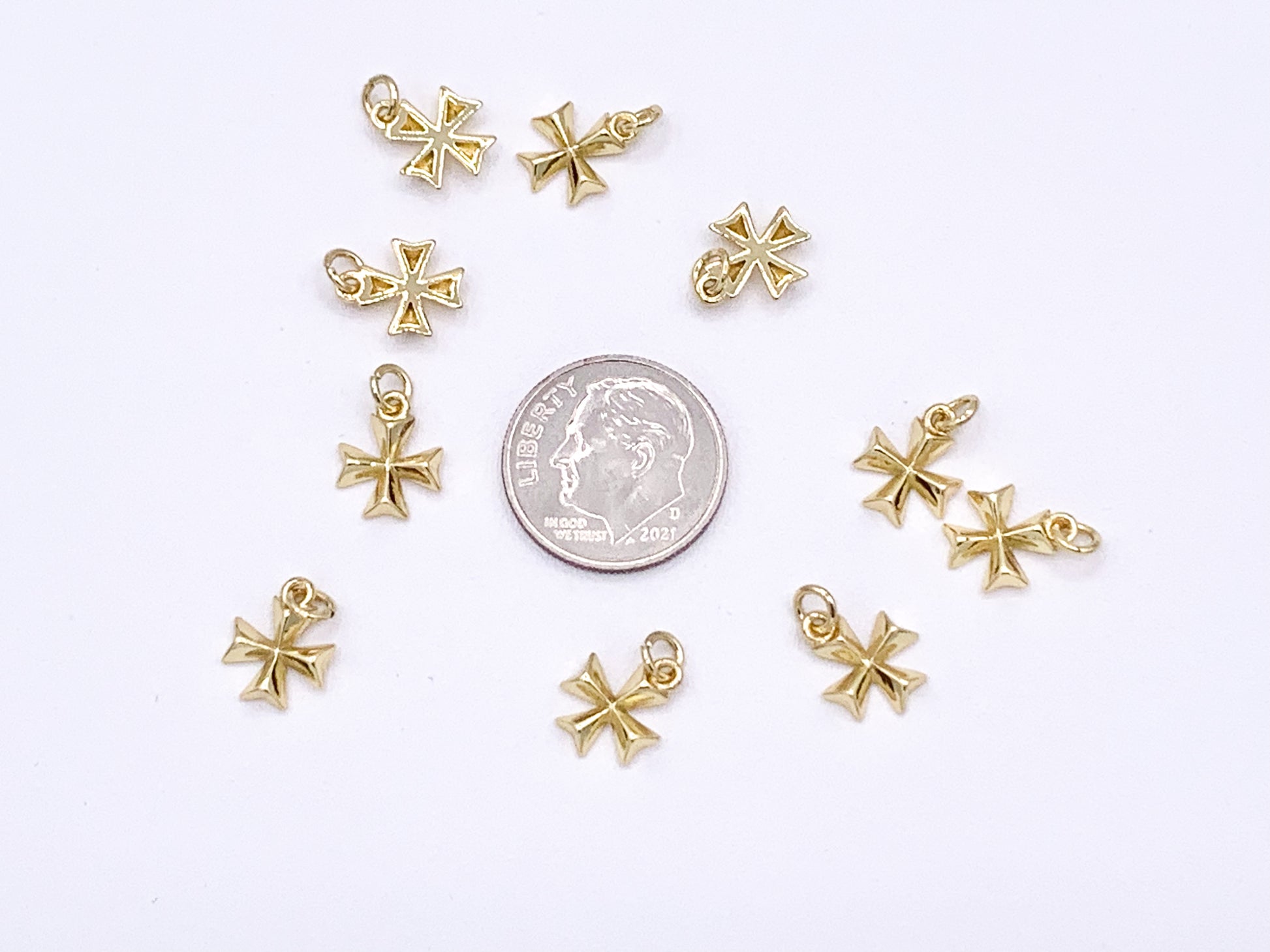 Tiny Cute Cross Religious Charms plated in 18K Gold Copper Base 10pcs