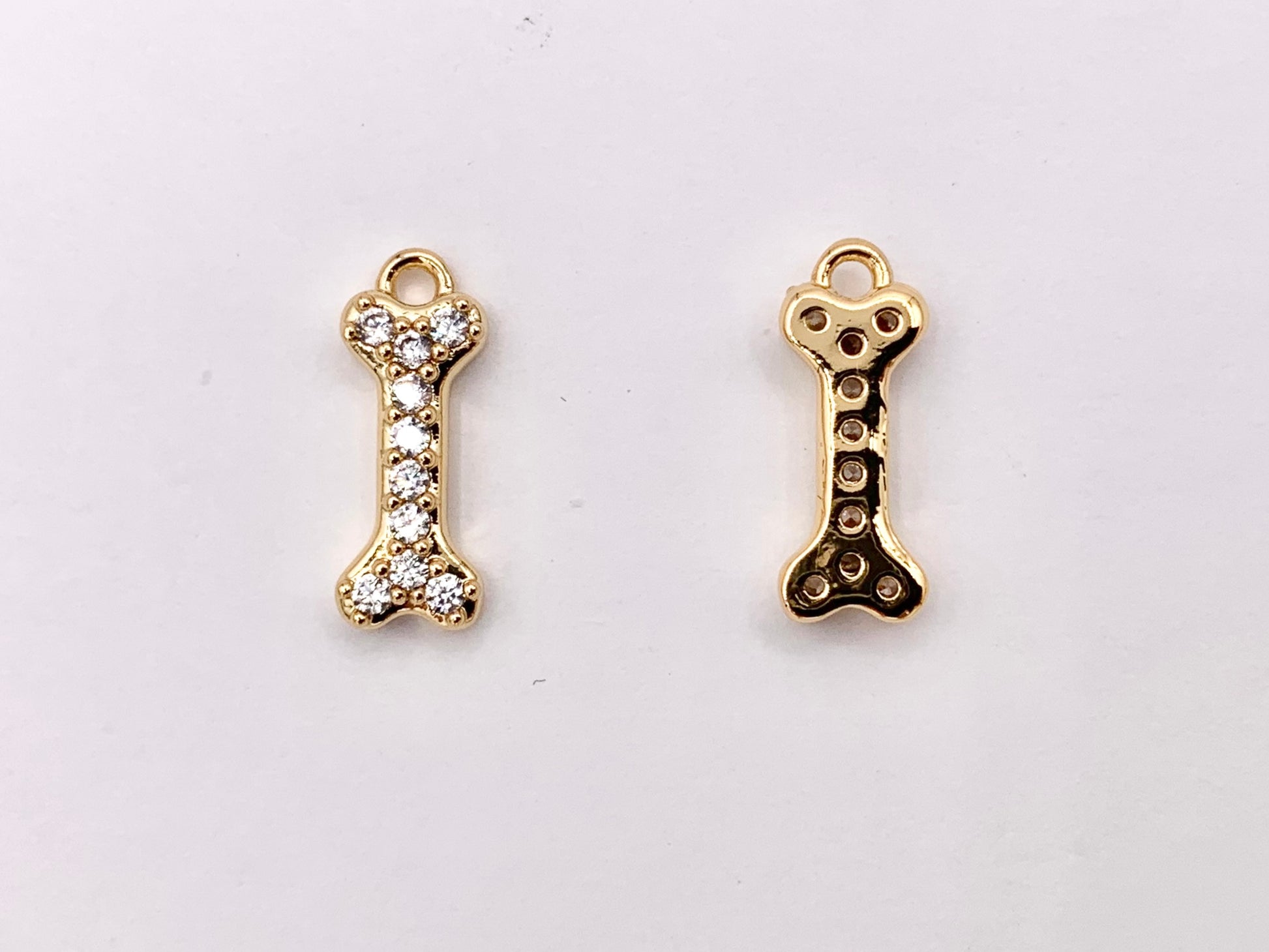 Tiny Cute Dog Bone Charms Small Bone Pendants in Real Gold 18K Plated CZ Pave Over Copper 10 PCS