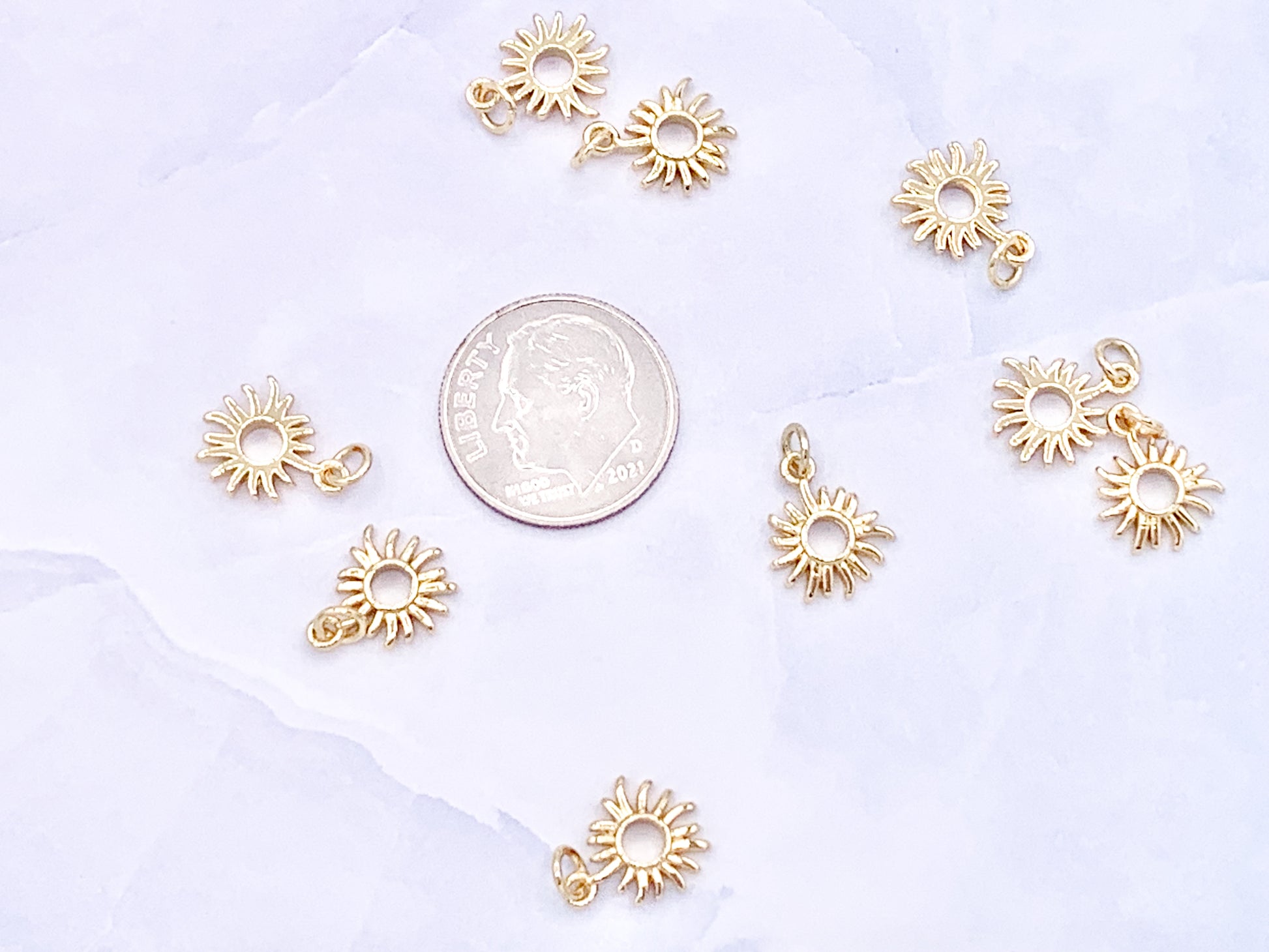 Tiny Cute Sunburst Sun Burst Charms plated in 18K Gold Copper Base 10 pcs