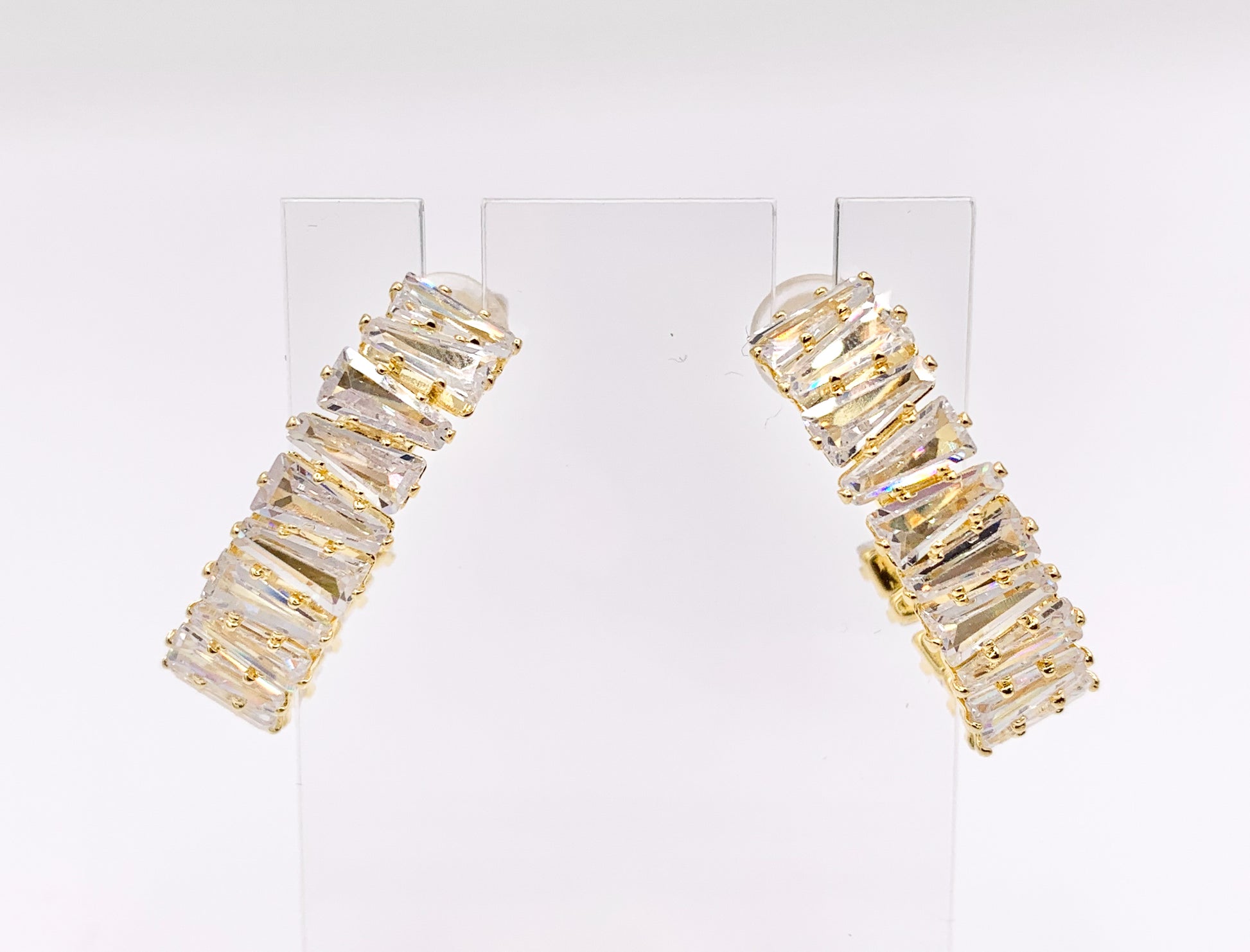 Trendsetting Unique Curve Link CZ Pave Baguette Hoop Earrings in 18K Gold Plated Copper