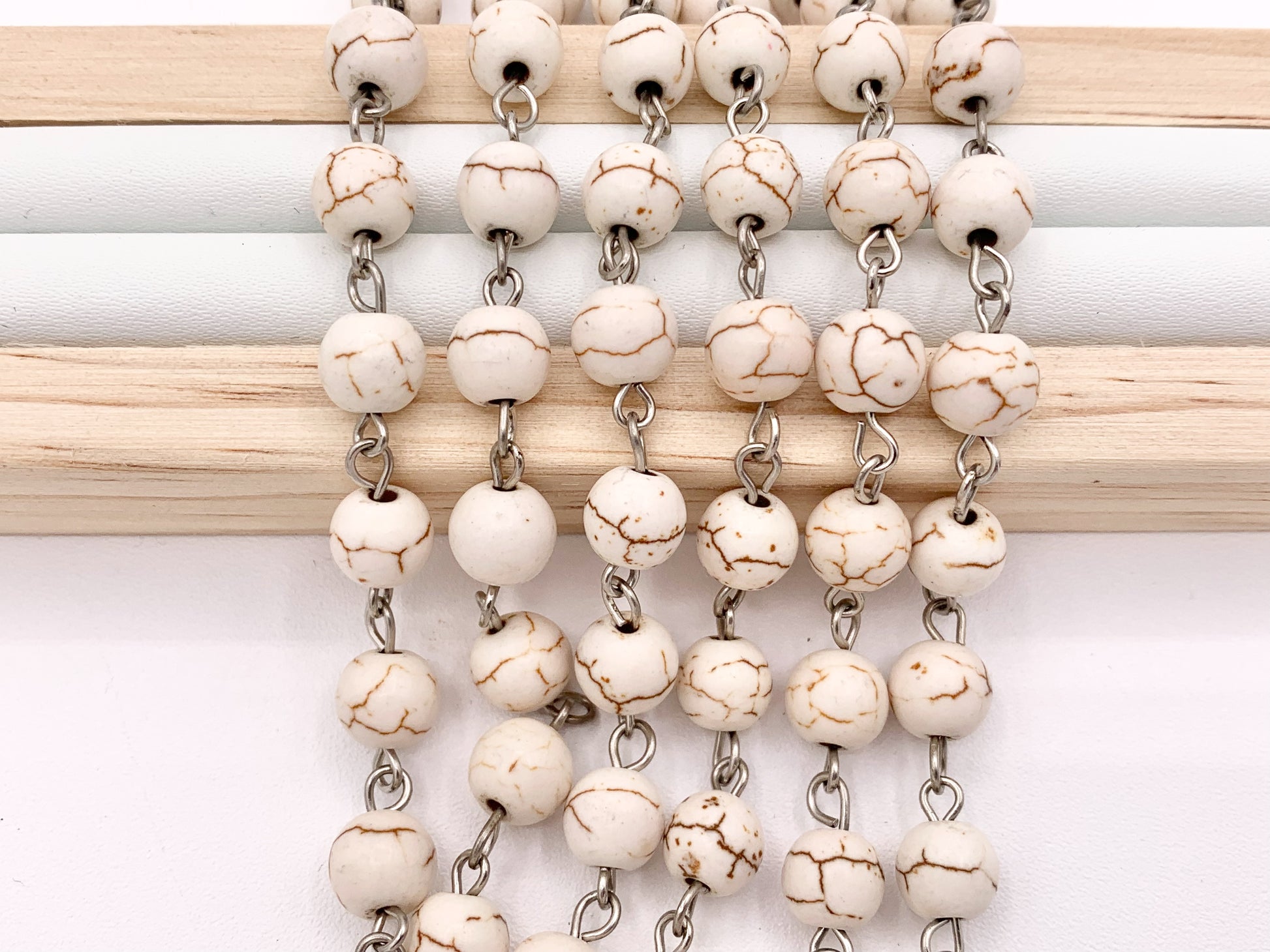 Vintage White Howlite Round Smooth Rosary Style Beaded Chain With Silver Wire 1 Spool 4mm 6mm 8mm 10mm 12mm