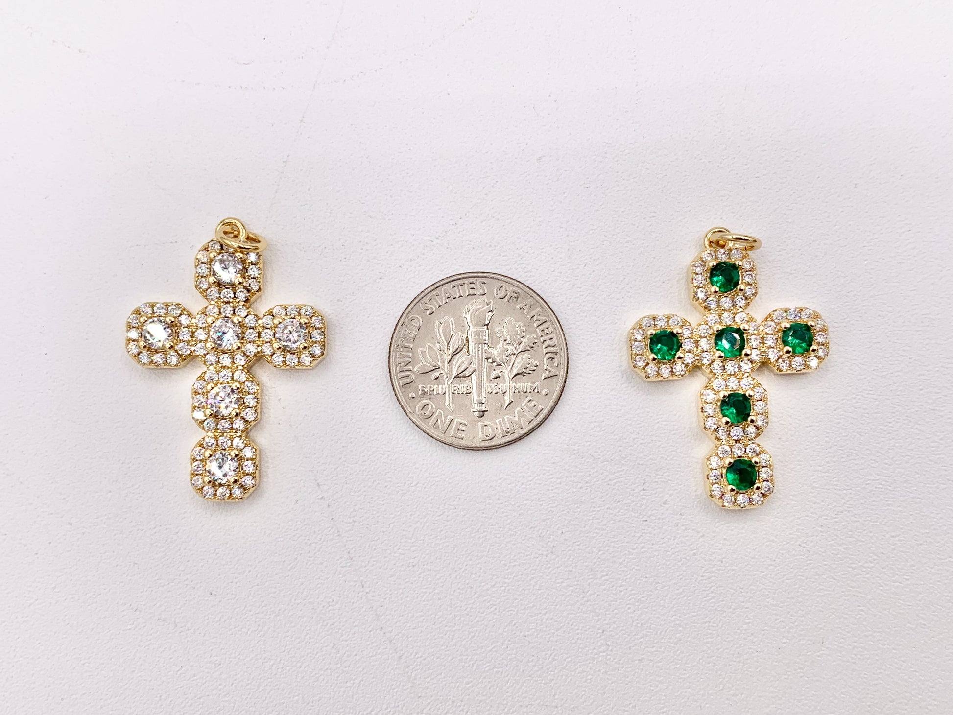 Whimsical Bedazzle Gold Cross Pendants with Beautiful Clear & Green CZ Pave in 18K Gold plated Copper 5 PCS