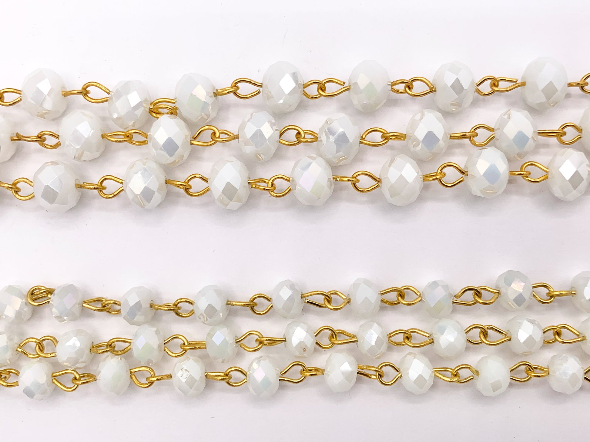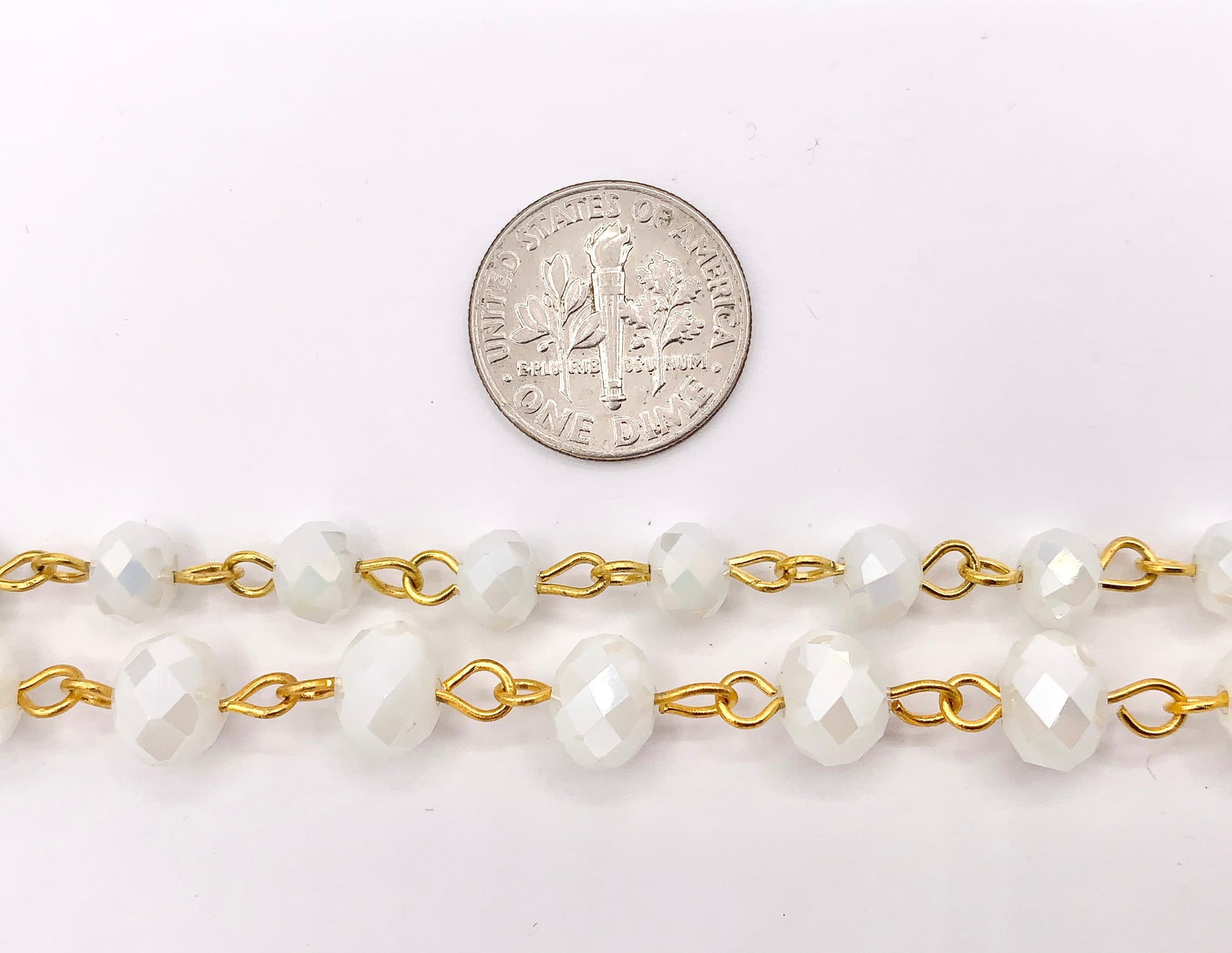 White AB Crystal Rondelle Faceted Rosary Beaded Chain With Gold Wire By Spool 6mm 8mm
