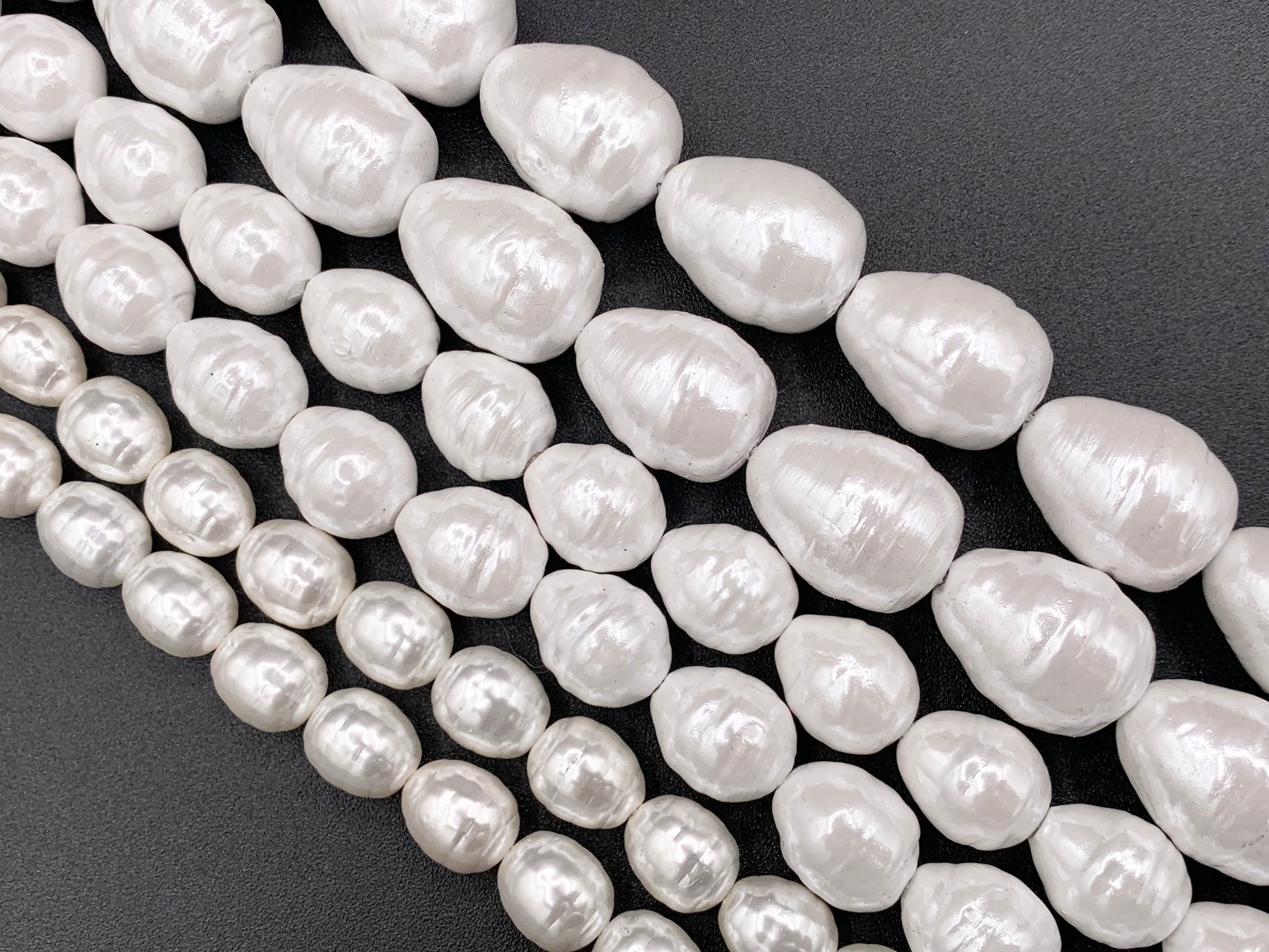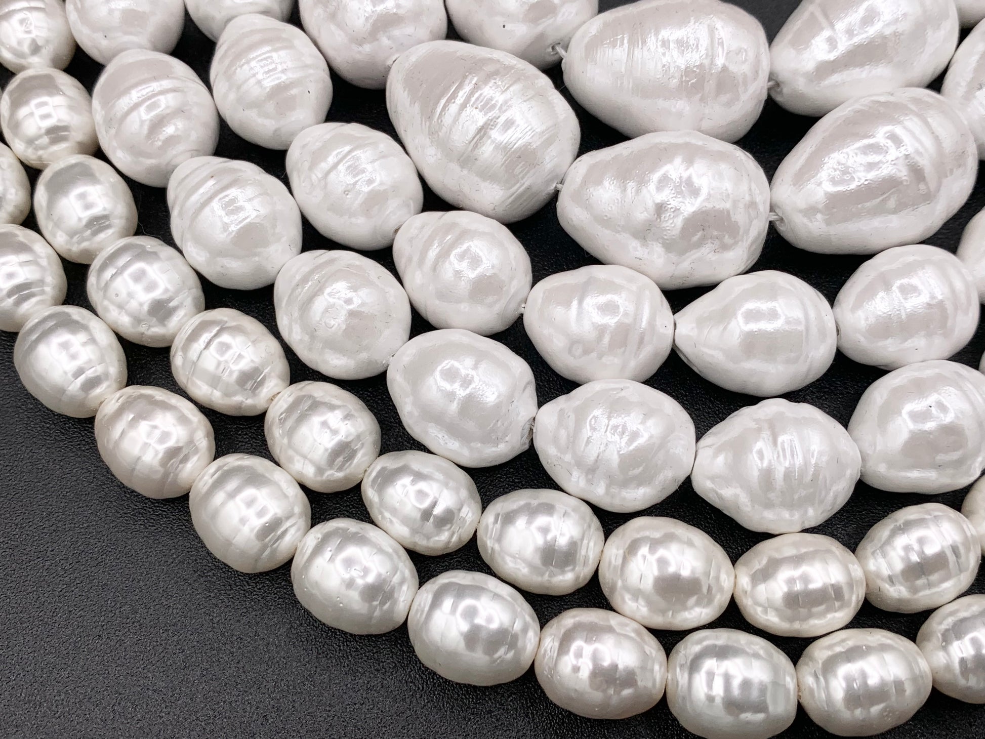White Shell Pearl Bee Hive Shape Beads Textured Egg Shape Beads Around 15" Available in 3 Sizes (1 Strand)
