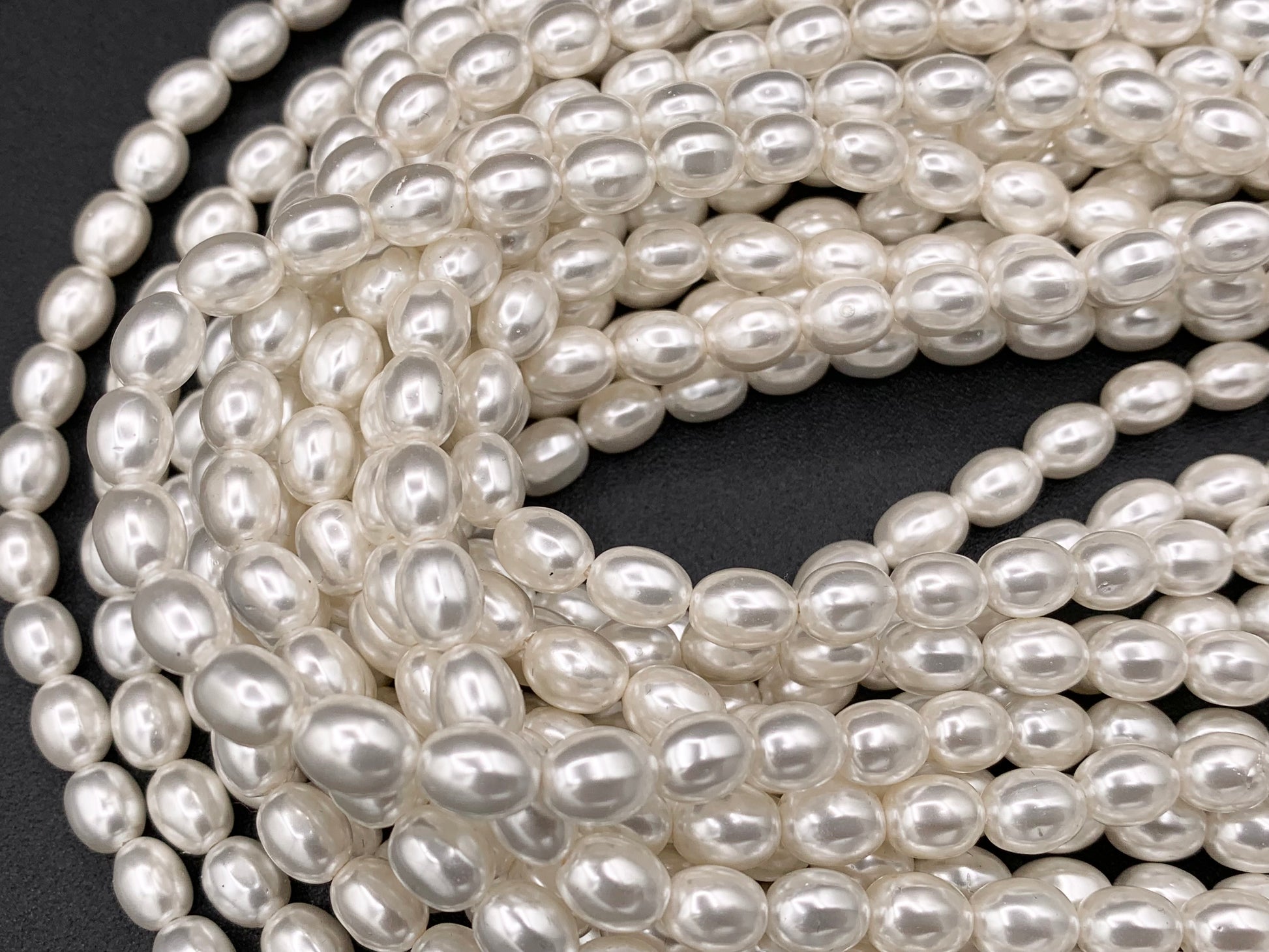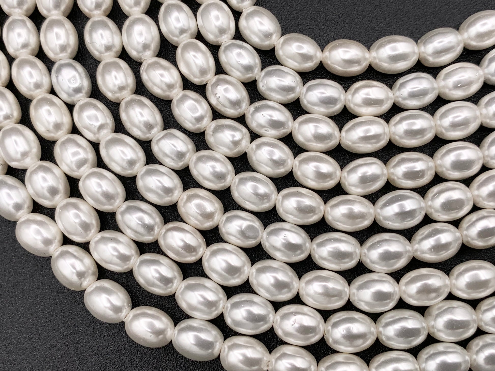 White Shell Pearl Smooth Rice Beads Pearl Powder Coated Shell Beads Around 15" Available in 6 Sizes (1 Strand)