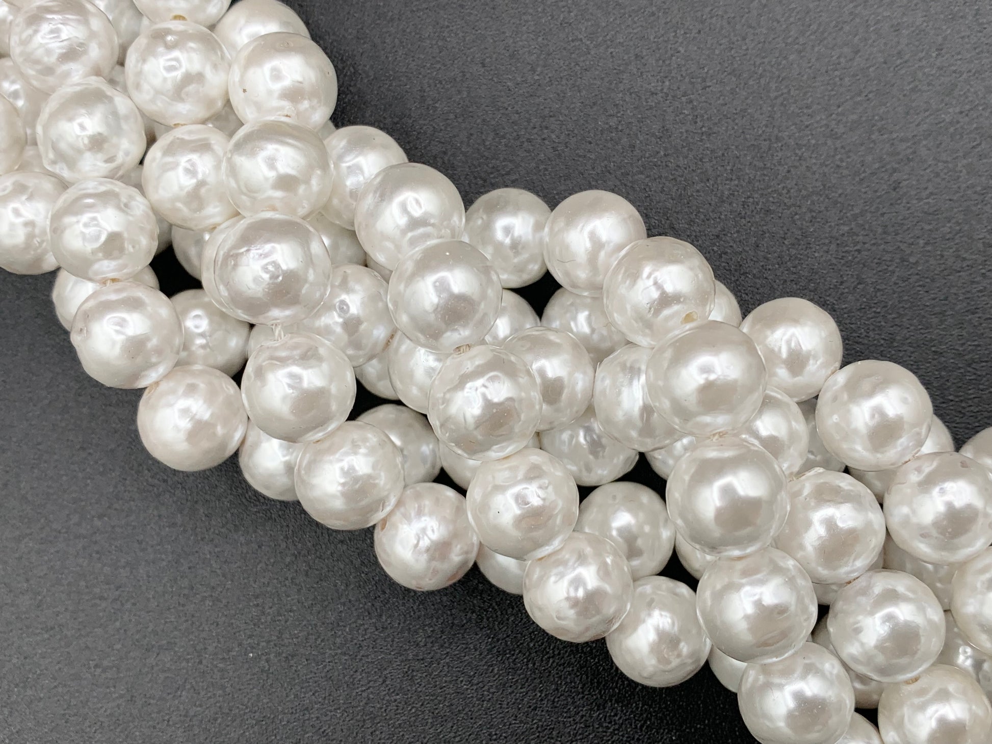 White Shell Pearl Textured Round Beads Pearl Powder Coated Shell Beads Around 15" Available in 5 Sizes (1 Strand)